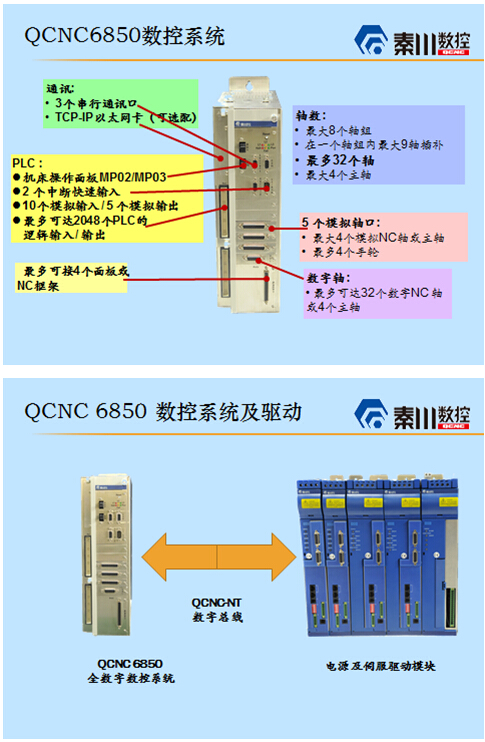全數(shù)字數(shù)控系統(tǒng)及伺服驅(qū)動系統(tǒng)簡化了連線,減少插頭數(shù)量,提高整個系統(tǒng)的可靠性。秦川數(shù)控QCNC6850數(shù)控系統(tǒng)的CNC和QDLU伺服驅(qū)動的緊湊型尺寸使它們更容易安裝在電氣柜中。