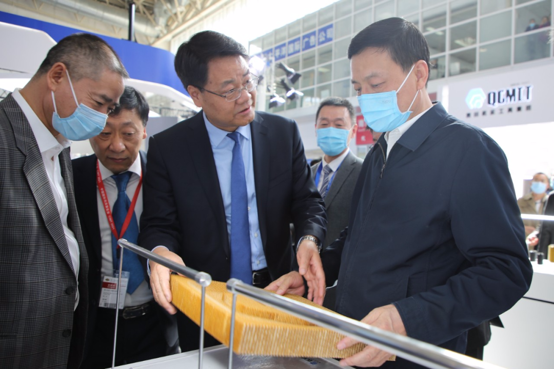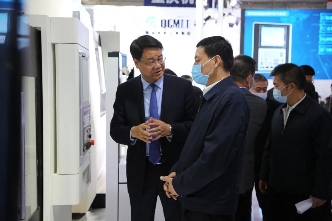4月14日,CIMT2021開幕第3天,國家工信部部長肖亞慶、副部長辛國斌及有關(guān)領(lǐng)導(dǎo)蒞臨秦川集團(tuán)展臺,受集團(tuán)黨委書記、董事長嚴(yán)鑒鉑委托,集團(tuán)黨委副書記、總裁李強陪同并匯報參展情況。