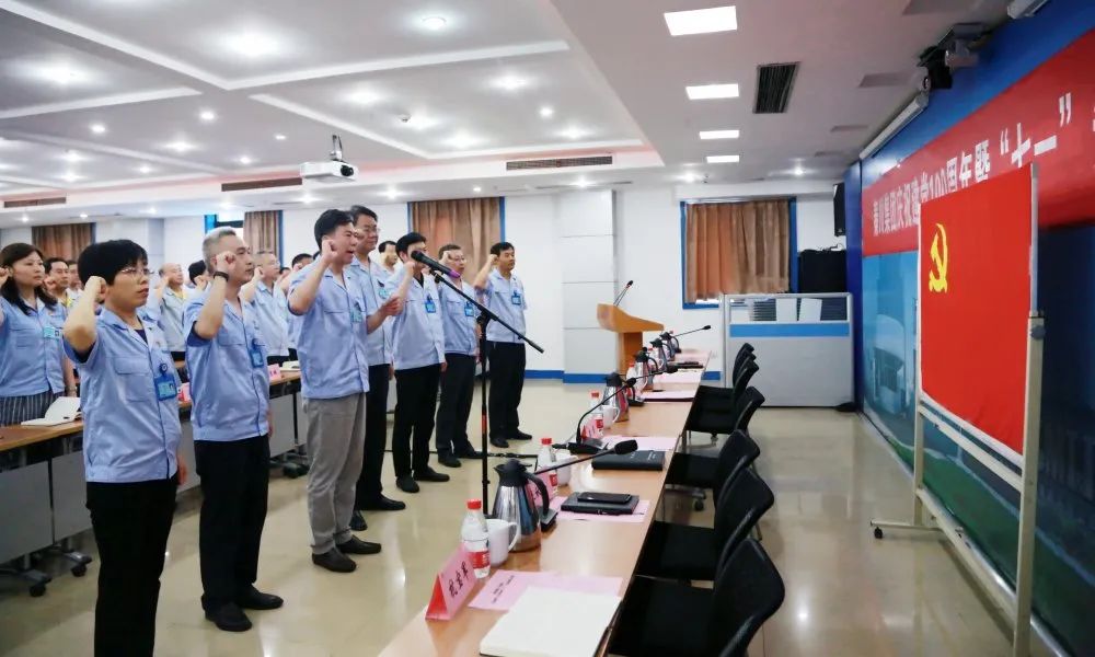 面對(duì)鮮紅的中國共產(chǎn)黨黨旗,嚴(yán)鑒鉑書記帶領(lǐng)班子成員、新發(fā)展黨員、全體參會(huì)黨員握舉右拳,鄭重宣誓,重溫入黨誓詞。