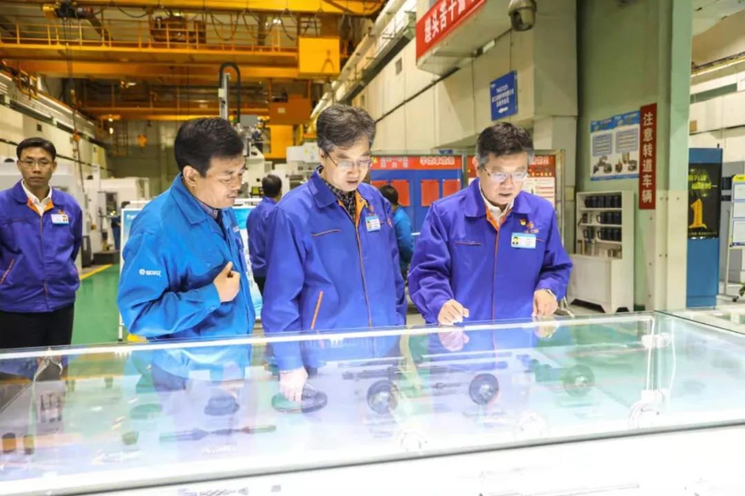 法士特領(lǐng)導(dǎo)干部先后參觀了秦川機床本部機器人數(shù)字化車間、總裝一車間和總裝二車間。